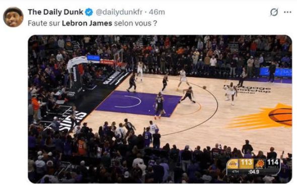 北京时间12月15日,NBA常规赛,湖人vs太阳的最后时刻,东契奇持球进攻,但最后面对防守选择把篮球传给了外围的詹姆斯,由后者三方造犯规搏得罚球,最终帮助湖人以116-114险胜对手。