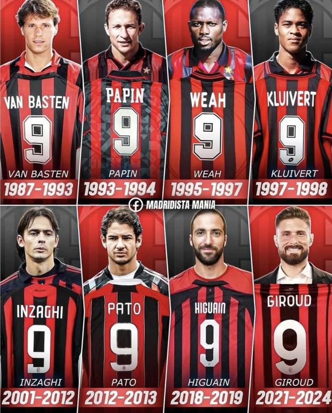 最近MADRIDISTA MANIA发布了“AC米兰历史9号球衣榜单”。范巴斯滕、维阿、因扎吉这些名字一摆出来,米兰9号的分量几乎不用多解释。帕潘、吉鲁也在这张图里,风格不一样,但都能让人想起米兰锋线那些真正靠进球说话的年代。把这8个人放在一起看,米兰9号到底有多硬,答案其实就在这份名单里。(以下数据来自德国转会市场)