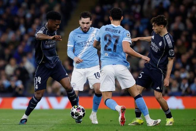 不过即便如此,瓜迪奥拉的球队也并没有放弃。第41分钟,多库精彩过人后助攻哈兰德破门扳平比分。易边再战,格伊、阿克联袂登场,而皇马则用卢宁换下库尔图瓦。第50和54分钟,哈兰德连续射门都被卢宁挡出。随后在第57分钟,瓜迪奥拉用马尔穆什换下了哈兰德。随后的时间,多库和艾特努里两度破门都被判无效,巴尔韦德和维尼修斯的进球也因为越位无缘扩大比分。伤停补时第3分钟,琼阿梅尼助攻维尼修斯完成梅开二度,皇马最终2-1获胜,总比分5-1昂首出线。